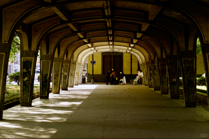 这里15栋百年前的老建筑错落有致,青砖清水墙、拱形门窗与彩色水磨石地砖相映成趣。历经近四年保护修缮,老街区既保留了“左手菜场、右手商业”的市井烟火,又融入了新潮艺术装置,历史底蕴与现代气息的碰撞,恰好呼应了影片“打破传统爱情套路”的核心主题。