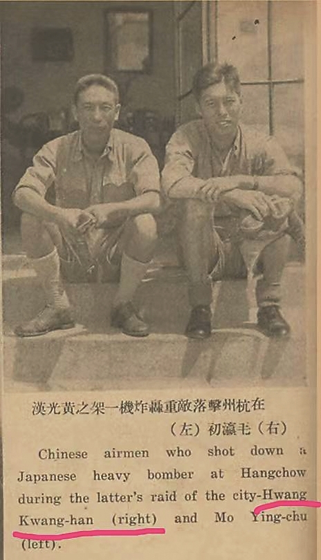 从1997年《拉贝日记》被译成中文以来,“Kwang Han-Hwang”曾被音译为“汪汉万”。2024年版《拉贝日记》译者刘海宁考证出,励志社的“Hwang”上校是黄仁霖,从而确定“Kwang Han-Hwang”后面的“Hwang”是姓——“黄”。故此,近两年新版《拉贝日记》将“Kwang Han-Hwang”音译为“黄广涵”。地方史学者张元卿等人通过检索当年空军学校名录,发现黄光汉名字的发音最为接近。更有力的证据是,他在1937年10月卷的《抗战摄影集》中查到中国飞行员黄光汉与毛瀛初的一张合影,配有中英文图说,其中黄光汉被译为“Hwang Kwang-han”,这与《拉贝日记》所写的“Kwang Han-Hwang”相较,只是姓与名的顺序不同。