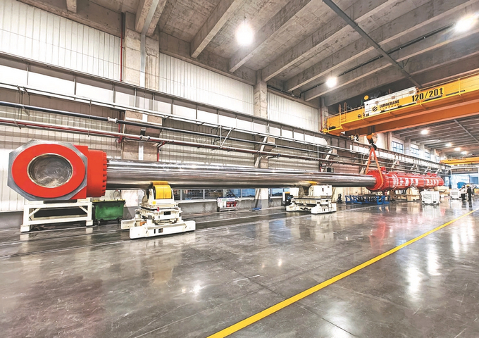 装备大国重器,将助力中国工程继续挺进深海。中国铁建大桥局船舶公司党委书记、总经理胡凯介绍,该油缸即将装配于在建的156米动力定位打桩船“铁建大桥桩1”号。这是目前全球最大打桩船,创新采用“DP+锚泊”双定位系统,能实现厘米级打桩精度,具备桩架最高、作业水深最深、定位精度最高等多项领先性能。今年6月,它将远赴巴西,参与建设拉美地区最大跨海斜拉桥——萨尔瓦多跨海大桥,是中国高端海工装备服务全球基建的又一标志性工程。