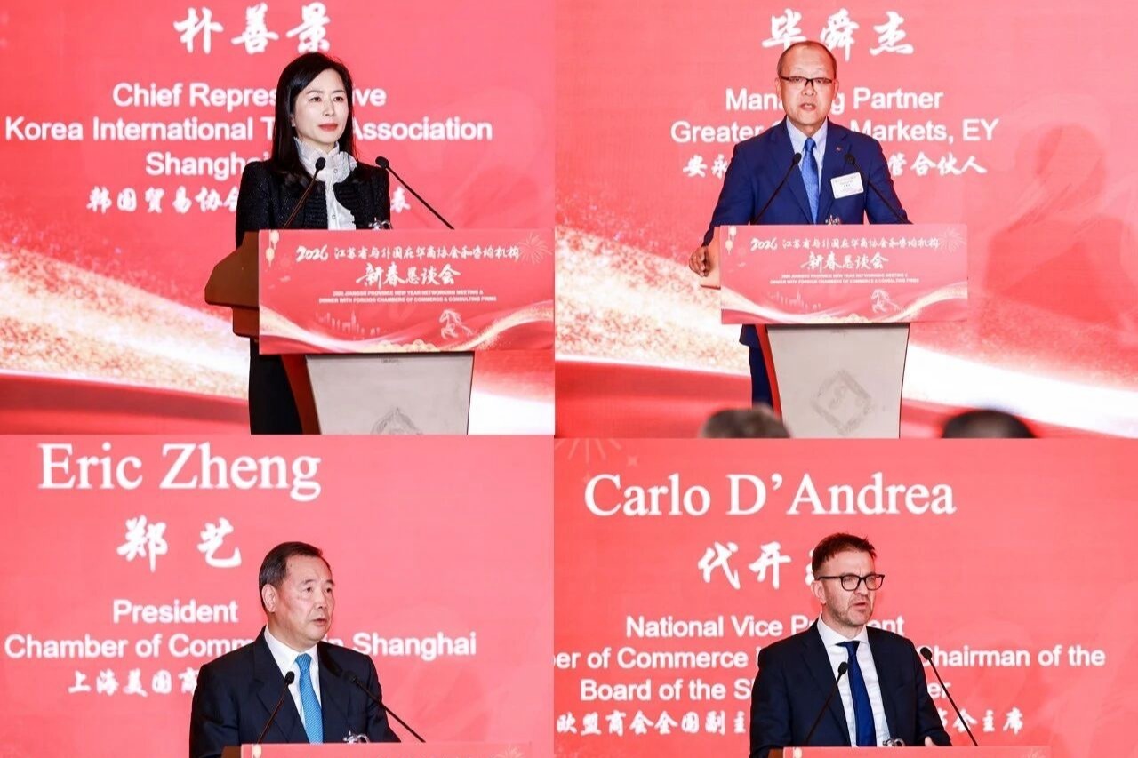 作为连接全球与本土的“超级联系人”,上海美国商会会长郑艺称赞江苏提供了“理想的投资环境”,他表示,过去一年,商会积极支持中美人文交流,包括杜克大学“江苏行”、江苏省友协乒乓球友谊赛,以及昆山杜克大学、南京大学中美文化中心的学生项目。2026年,商会将与江苏联合举办政策简报会和圆桌对话,在知识产权保护、企业环境评价体系、医疗健康产业、进口医疗器械本地化等重点领域,携手打造更具国际竞争力的营商生态,助力会员企业从江苏走向全国、服务全球。