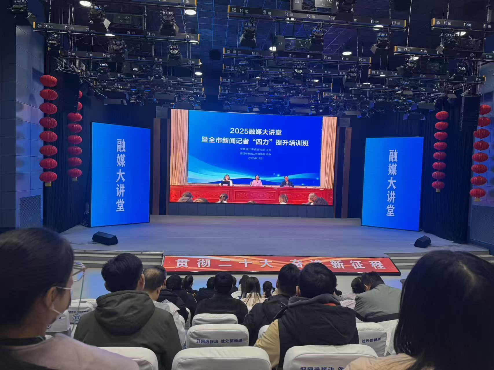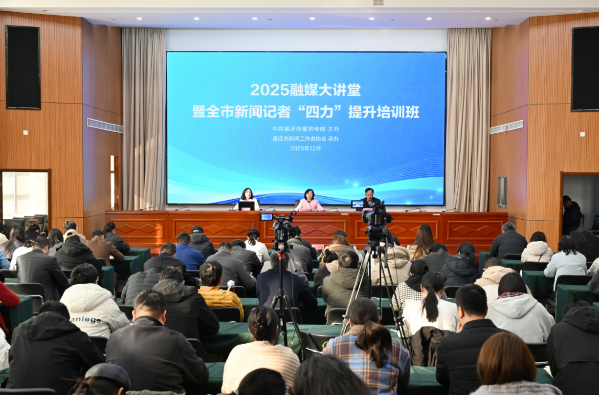 为进一步锤炼全市新闻工作者的脚力、眼力、脑力、笔力,促进业务交流,丰富实战经验,共同推动宿迁新闻事业的发展,12月5日上午,由宿迁市委宣传部主办、市记协承办的2025融媒大讲堂暨全市新闻记者“四力”提升培训班正式开班。