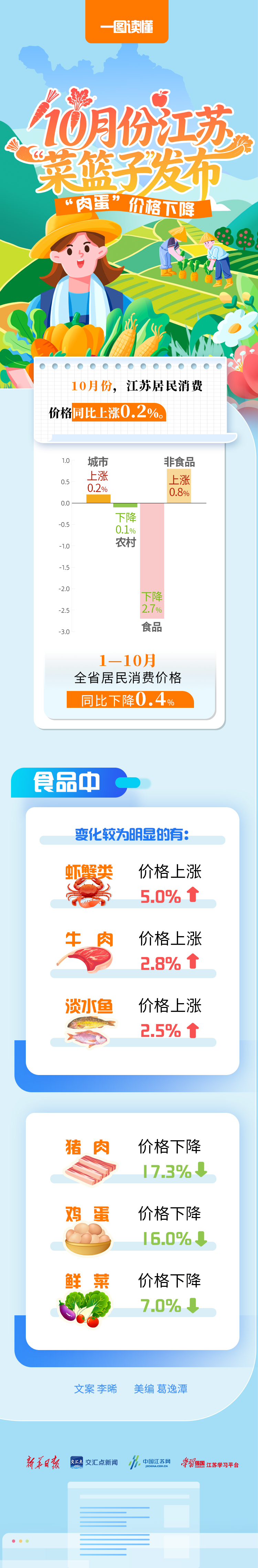 一图读懂|10月份江苏“菜篮子”数据发布,“肉蛋”价格下降
