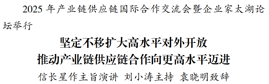11月18日,以“汇聚新质生产力 开放合作赢未来”为主题的2025年产业链供应链国际合作交流会暨企业家太湖论坛在无锡举行。省委书记信长星作主旨演讲,省长刘小涛主持。商务部党组成员、部长助理袁晓明出席并致辞。