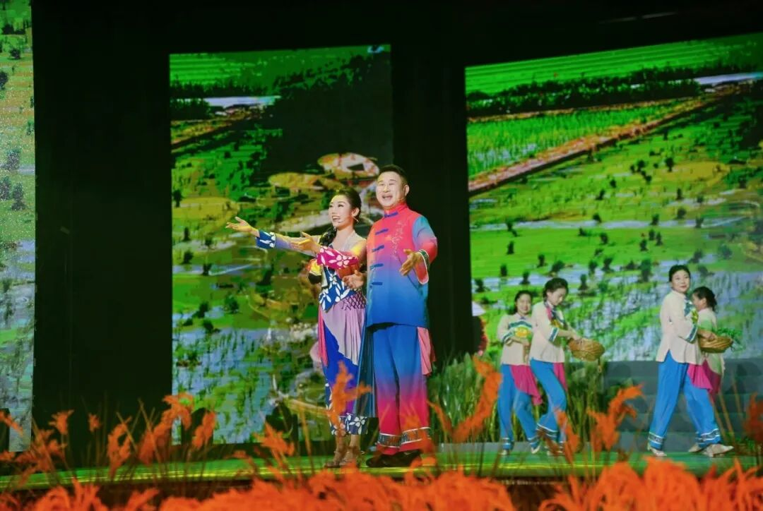 展演中,悠扬的“格咚代”曲调在剧场内回荡,金湖秧歌传承人和文化馆组成的表演团队身着水乡服饰,手持翠绿秧苗,再现插秧劳作场景,唱响了流淌在千年运河畔的生活记忆,将台下千余名观众带入了广阔的秧田之中。