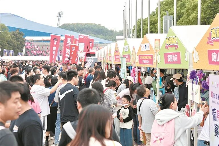 市集不仅是展示本地文化的窗口,更是区域交流的舞台。在主场期间的市集上,镇江文旅都会为客队城市的文旅预留最醒目的展位,让到场的数万镇江球迷能最直接地了解客队城市。句容的蜜桃、丹阳的眼镜、扬中的河豚等特色产品也借机组团亮相。陕西渭南、辽宁沈阳、新疆可克达拉、西藏达孜等地对口城市、友好城市带来的当地美食、非遗、文创的展销,也让多元交融的主题市集成了开放包容的“城市会客厅”,展现出镇江这座城市既能凝聚力量、团结一心描绘“同心圆”,又能敞开胸怀、结交挚友共享“朋友圈”。