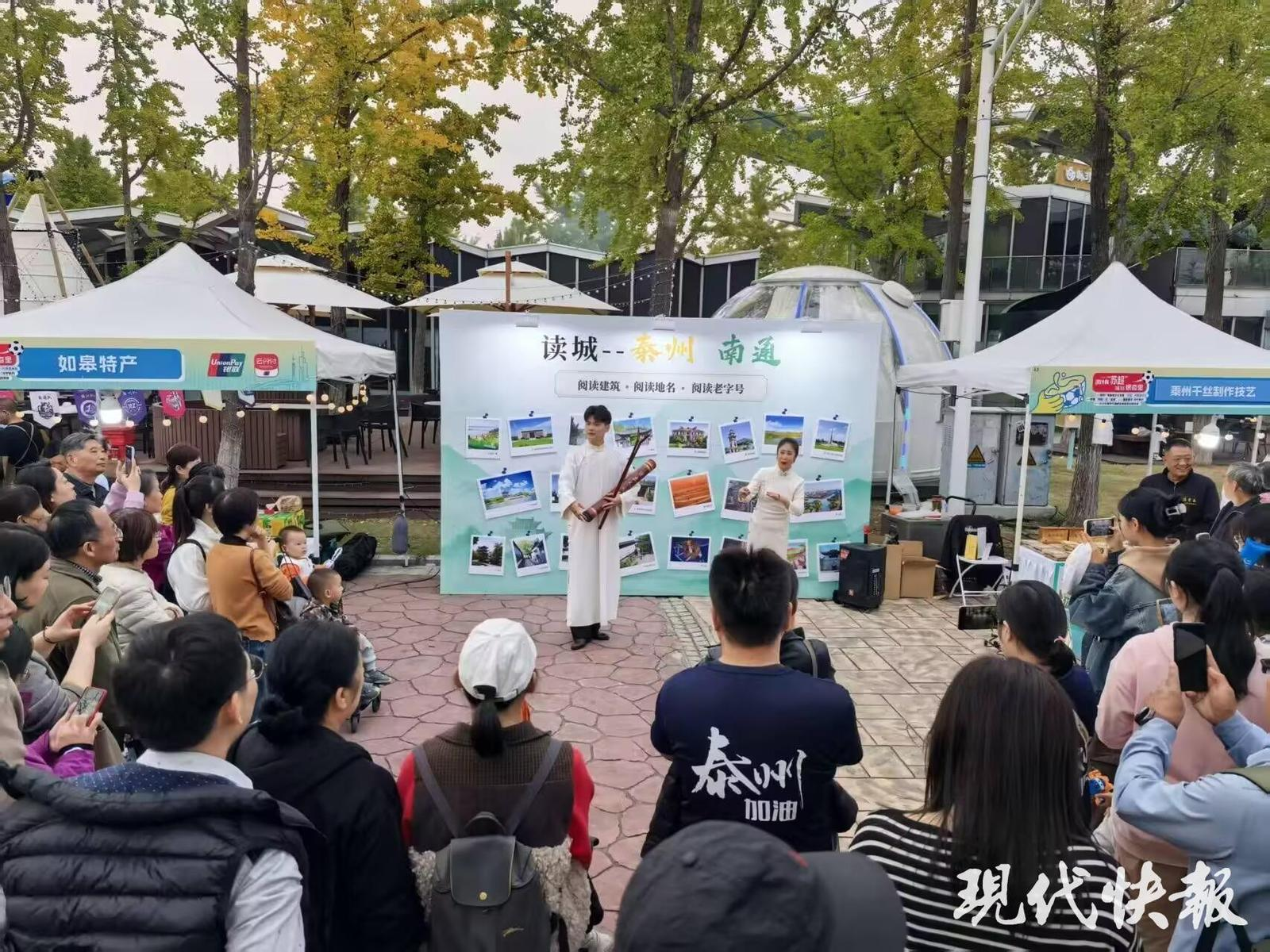 11月1日,2025江苏省城市足球联赛(“苏超”)在南京奥体中心迎来终极一战,南通队与泰州队角逐最高荣耀。当天,泰州、南通两座城市还在南京市建邺区银杏里文化艺术街区,联合举办跟着苏超去“读城”活动。在苏超第二现场,冠军夜的烟火气与文化气息拉满,让球迷们看球、逛吃、赏非遗一站式尽兴。
