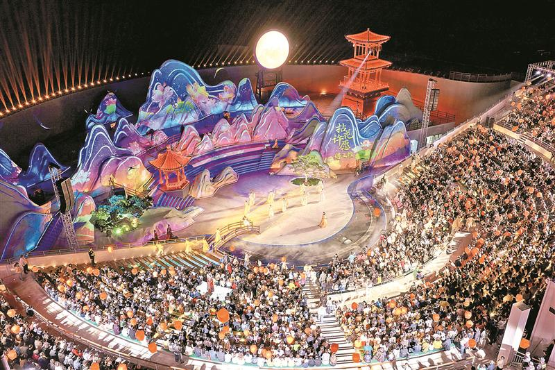 据了解,首演场次吸引数千名游客观演,其中亲子家庭占比超六成。景区工作人员告诉记者,《拈花许愿》将非遗打铁花、孔明灯祈福等传统元素,与现代光影、无人机技术深度融合,既让孩子直观感受非遗技艺的魅力,也通过许愿互动传递温情。下沉式花海许愿广场的舞台设计,让观众被舞台环绕,形成天然的共鸣场域,进一步强化沉浸式体验。