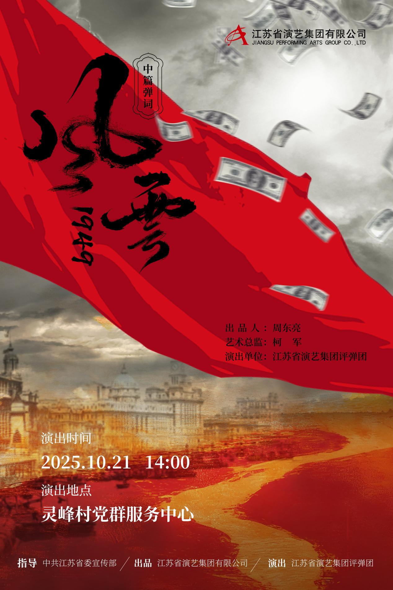 10月21日、22日,由江苏省委宣传部指导、江苏省演艺集团出品、集团评弹团演出的中篇弹词《风云1949》分别在苏州相城区灵峰村党群服务中心、南京市秦淮非遗馆小剧场成功首演。将建国初期发生在上海的那场惊心动魄的 “金融之战” 搬上舞台,带领观众重温那段波澜壮阔的历史。