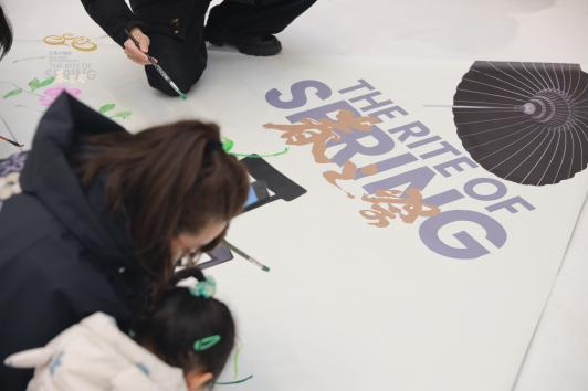 本次南京站演出期间,江苏大剧院打造了多层次的艺术沉浸体验空间。剧院咖啡馆推出《春之祭》联名西点,以巧思设计吸引观众驻足;歌剧厅前厅,伴随“画室之梦”的音乐缓缓流动,观众可在三角画布上自由泼墨,绘制心中的春天;现场还设置了漂流瓶传递活动,观众记录、绘画的观演心情、舞台瞬间将随巡演前往下一站青岛,实现不同城市观众的隔空情感连接。