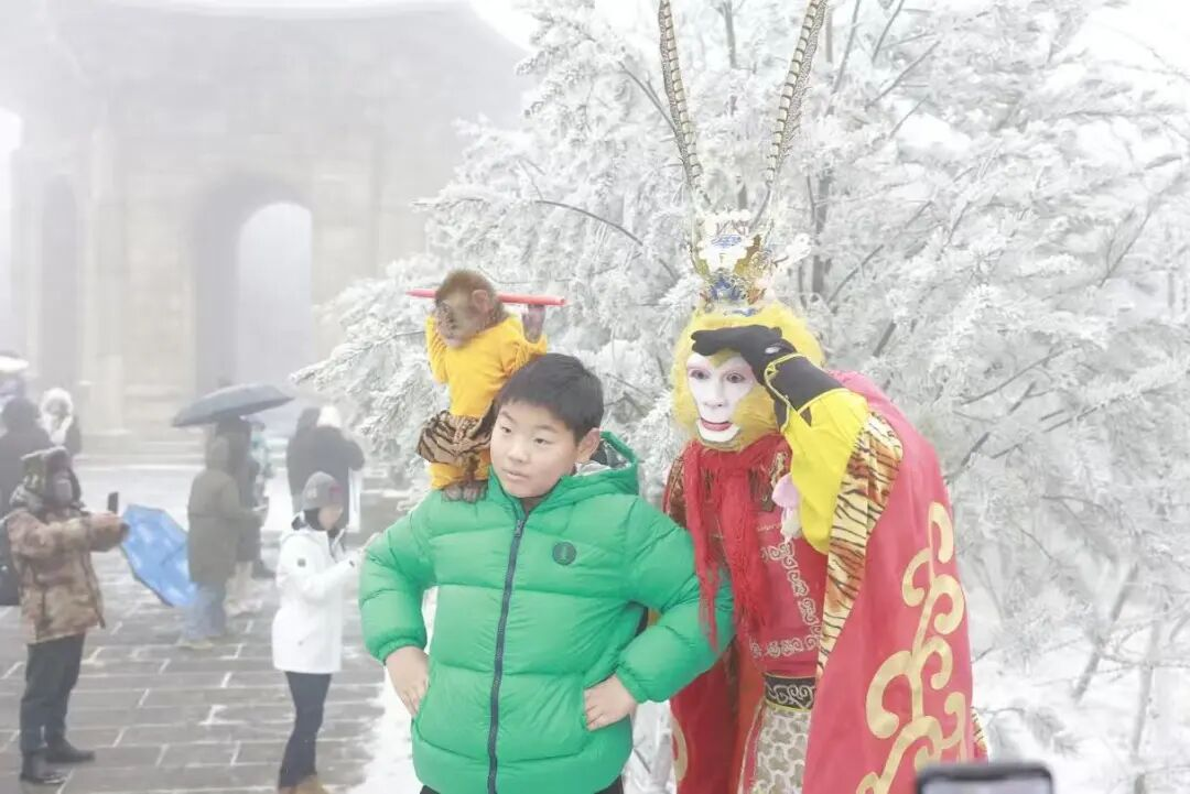 镜头记录下的不仅是冰雪的静态之美,更有文化在寒冬中绽放的动态活力。随着一阵富有节奏的音乐在雪谷间响起,“西游神魔团”演员们身着绚丽的戏装,现身雪地之中,将神话传说与现代表演艺术完美融合。西游经典人物伴随着动感十足的音乐舞动,跳起了充满现代节奏的快闪舞蹈,让现场的气氛瞬间点燃。这场别开生面的雪地快闪,不仅打破冬季山水旅游“只可远观”的传统模式,更以零距离、沉浸式的鲜活演绎,生动诠释“文化惠民”的灵动与温度。
