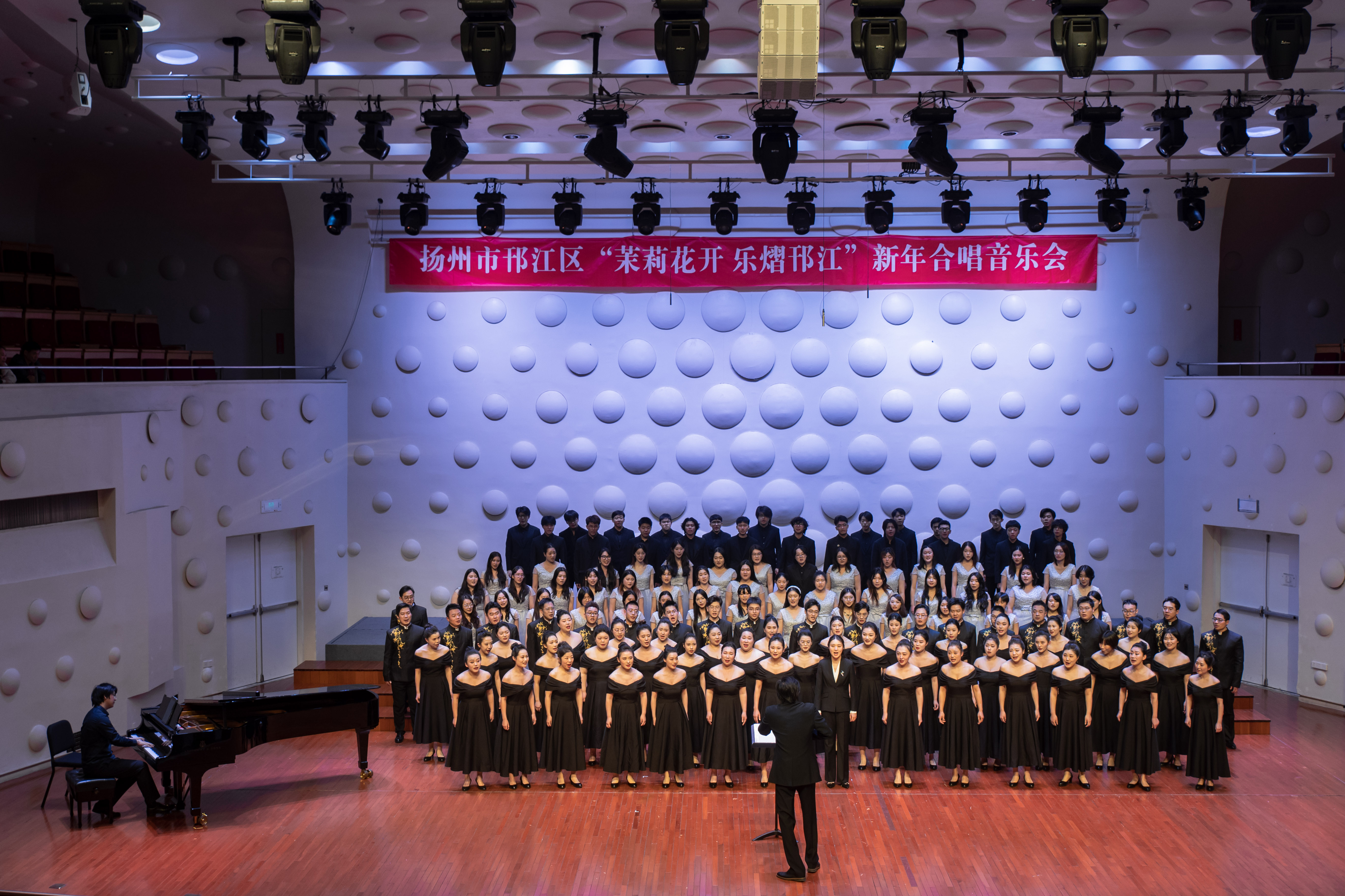 12月27日晚,扬州市邗江区“茉莉花开·乐熠邗江”新年合唱音乐会在扬州市音乐厅举行。来自邗江区青年教师爱乐合唱团与上海师范大学泊乐合唱团的百余名团员,以精湛的技艺与深情的演绎,为现场600多名观众呈现了一场高水准、多元化的合唱艺术盛宴,不仅为即将到来的新年奏响了馨悦和融的幸福序曲,更生动描绘出邗江区群众文化蓬勃发展的繁荣画卷。