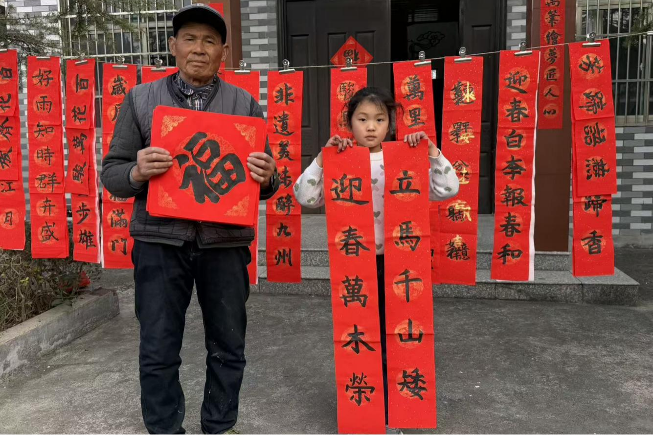 新春渐近,平安垛村年味正浓。村民与小书法家,在飘着墨香的红幅前合影留念
