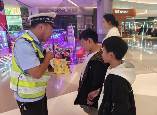 铜山区印象里广场的活动则侧重青少年教育,交警向青少年发放《交通安全教育绘本》,并结合绘本内容,细致讲解如何安全过马路、规范乘车,引导其“知危险、会避险”。活动共发放绘本和宣传资料200余份,直接服务群众300余人次。