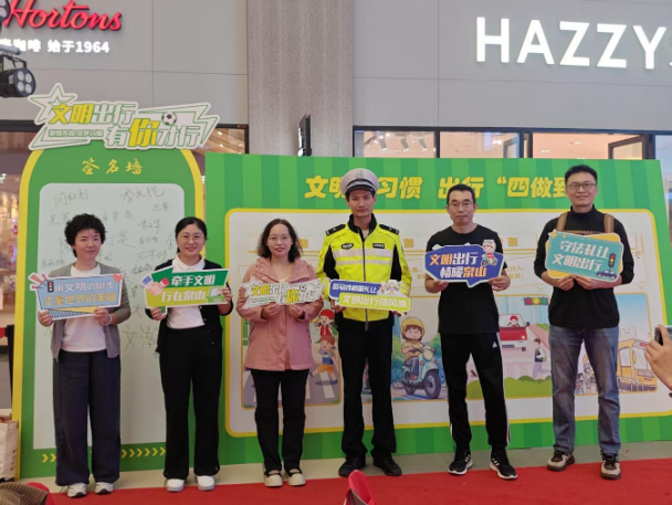 在邳州市中钰购物中心,交警结合典型交通事故案例,针对“闯红灯”“不戴头盔”等常见陋习进行重点解析,解答群众出行疑问20余条,并设置了深受孩子们欢迎的“文明行为飞行棋”互动区,吸引50余名儿童参与,发放特色纪念品和《交通安全教育绘本》60余份。