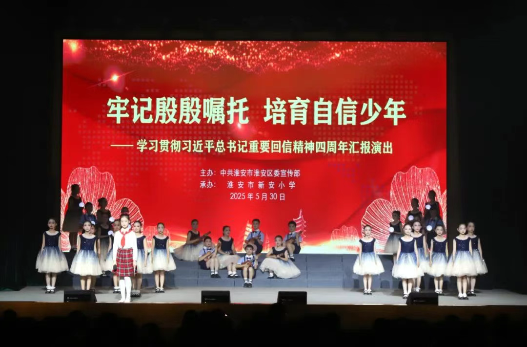 一批活动成果丰硕。开展“扣好人生第一粒扣子”“我们都是收信人”等主题教育实践活动,相关经验做法被《人民日报》、央视等国家级主流媒体多次推介报道,“新旅”光荣传统登上全国、全省“开学第一课”。精心组织“童声里的中国”少年儿童歌咏、“童心里的诗篇”少儿诗会和“童真里的色彩”儿童画创作等系列美育活动,淮安市优秀作品多次在央视活动现场呈现,展现淮安市青少年良好精神风貌和美育成果。