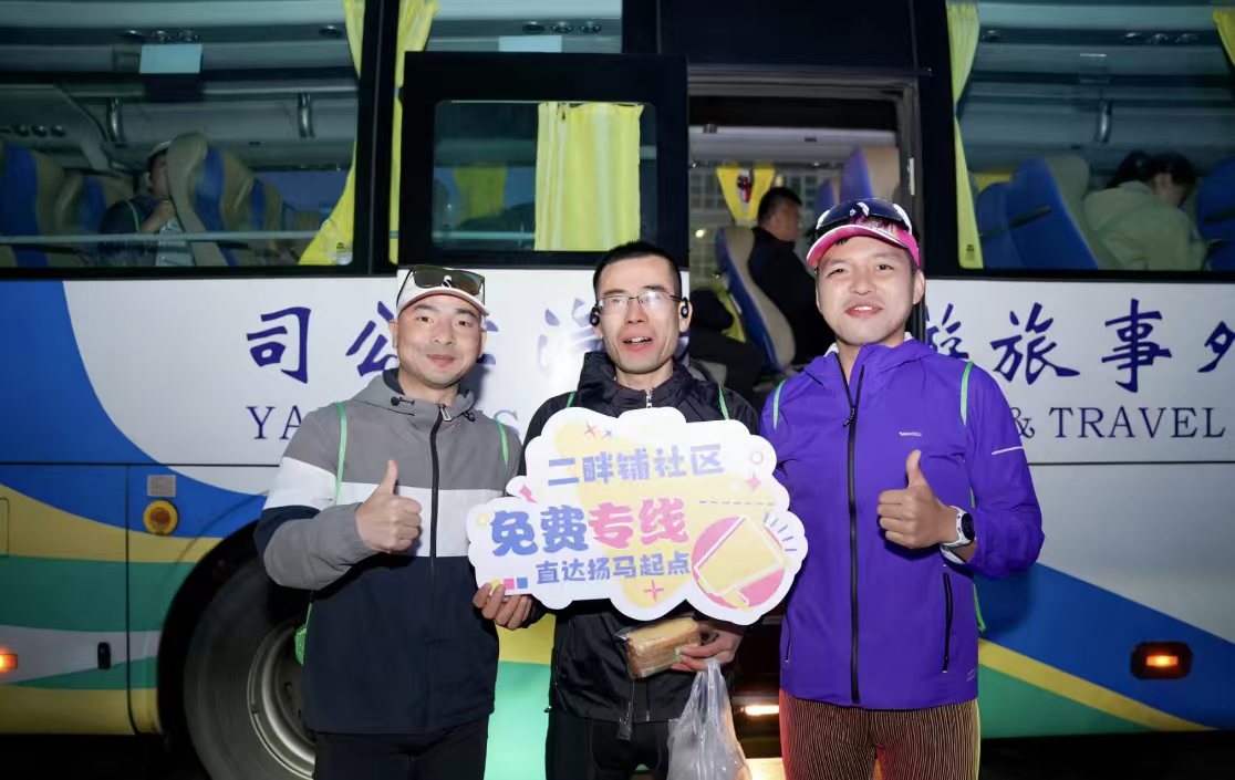 在广陵区曲江街道二畔铺社区,清晨5时30分,天还未亮,一辆贴有“扬马助威”标识的包车已准时停在酒店门口。这已是社区连续第二年包车护送外地选手前往起点。“免去了早起打车的麻烦,扬州真的特别暖心。”来自安徽的选手卫女士说。赛后,她计划凭号码布免费游览瘦西湖、个园——这是扬州为所有跑者送上的“文旅礼包”。