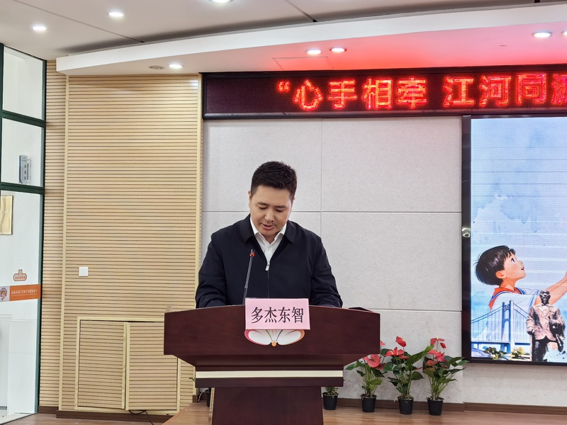 海门区副区长多杰东智、团区委、民宗局、教育局及泽库县相关负责同志共同出席。副区长多杰东智在致辞中强调,“‘心手相牵’不仅是学生之间的交流,更是两地文化、情感与价值观的深度融合。我们要把这样的活动,做成思政育人的‘活教材’,让孩子们在真实互动中理解‘中华民族一家亲’的深刻内涵。”