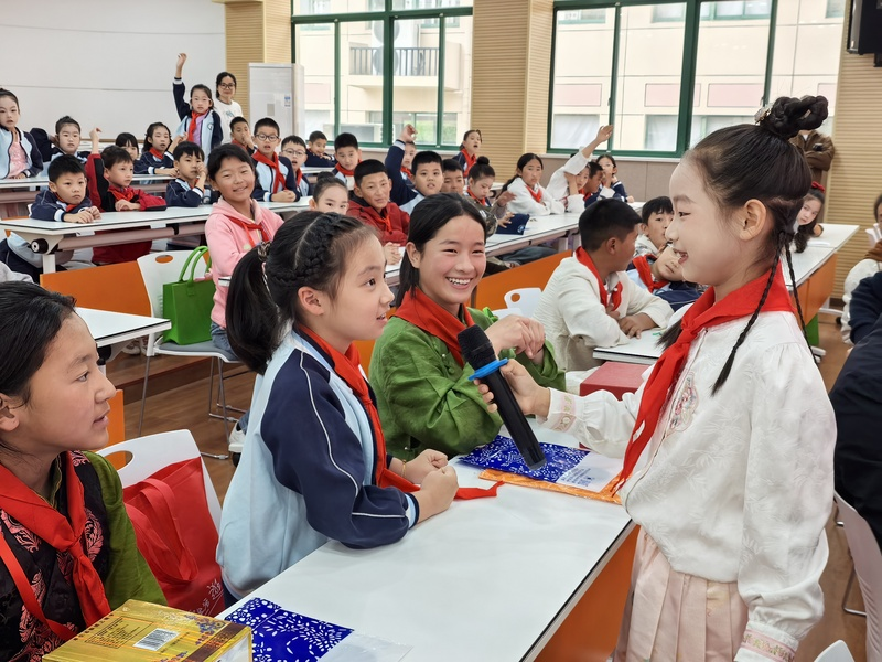 “泽库最有名的草原是哪个?”“海门三星镇的什么产品闻名全国?”在“家乡关键词快问快答”中,孩子们从腼腆到开朗,从陌生到熟悉。你问我答之间,不只是知识的传递,更是文化认同与情感共鸣的真实发生。