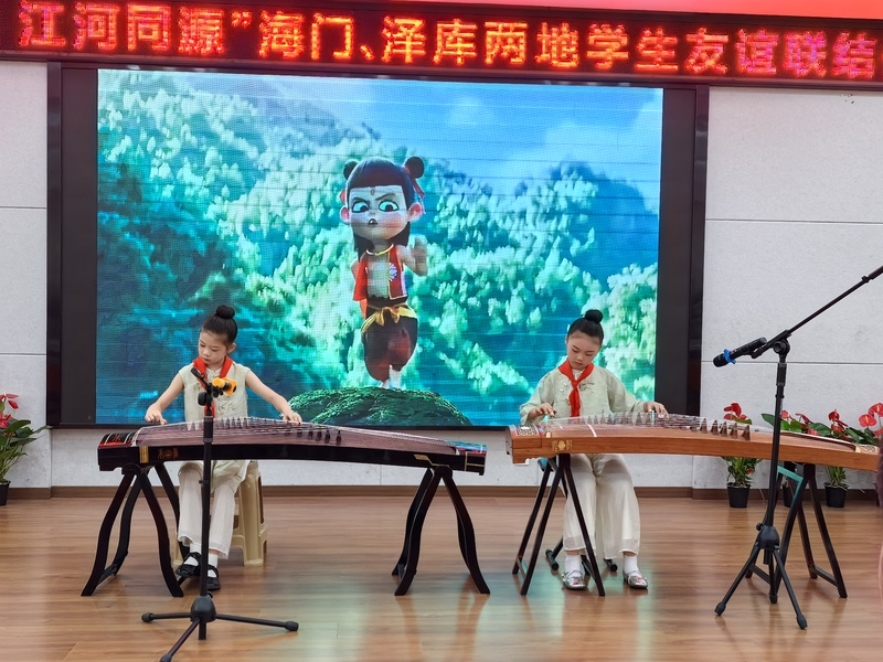 “爱的抱抱接力赛”考验默契,文艺展演绽放风采,一堂关于美与团结的课堂生动呈现。海门孩子的琵琶、古筝、爵士舞,泽库学子扎西拉毛纯净的《敬酒歌》、更藏才让深情的藏语朗诵《母亲》,当江海韵律与高原歌声同台回响,多元文化在舞台上交融,也在心里扎根。