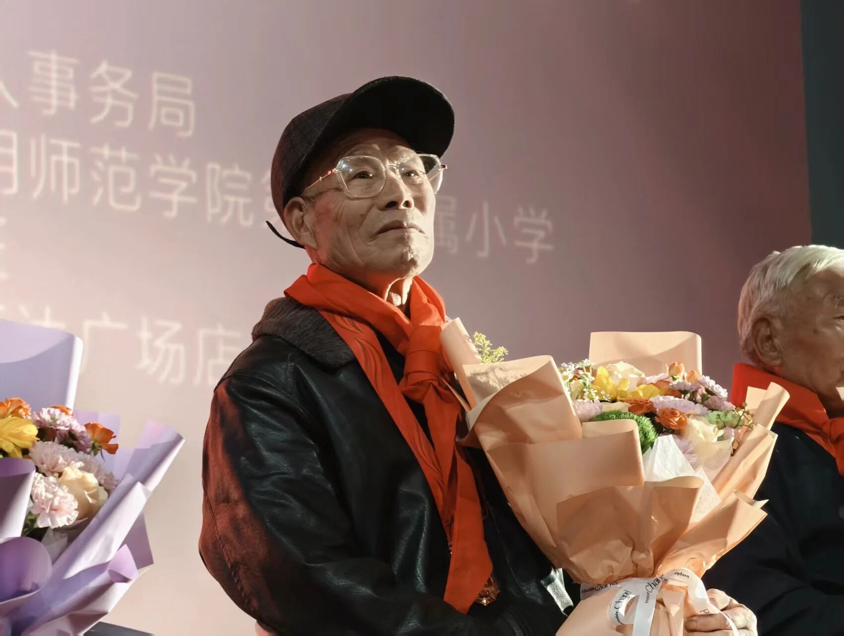 陈田彰老先生回忆起70多年前中华人民共和国诞生时期的奋斗岁月并回赠书法作品,勉励同学们立志向上、报效国家。