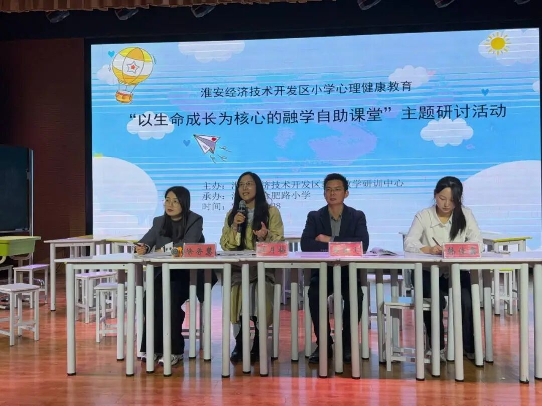 金秋送爽,心育润心。10月28日下午,淮安经开区小学心理健康“以生命成长为导向的融学自助课堂”主题研讨活动在淮安市合肥路小学顺利举行。本次活动旨在深入践行市“融学课堂”教学改革理念,提升心理健康教育课程的实施水平。淮安经济技术开发区心理健康教研员吴建飞校长、淮安市外国语实验小学符月梅主任团队,以及经开区小学专兼职心理教师代表齐聚一堂,共研共进。