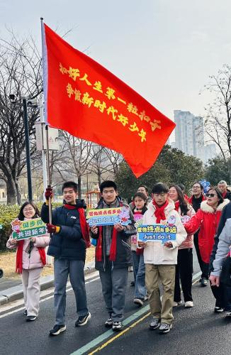 参加本次活动的“新时代好少年”代表中,既有深耕红色热土的红色故事宣讲员,用童声传递革命薪火;也有勇攀科创高峰的科技小达人,用奇思妙想点亮未来。活动中,他们高举“扣好人生第一粒扣子”主题旗帜,手持《淮安市中小学生文明倡议微九条》宣传牌,迈着铿锵有力的步伐,在健步途中传递文明理念,让文明新风尚一路传播、浸润人心。