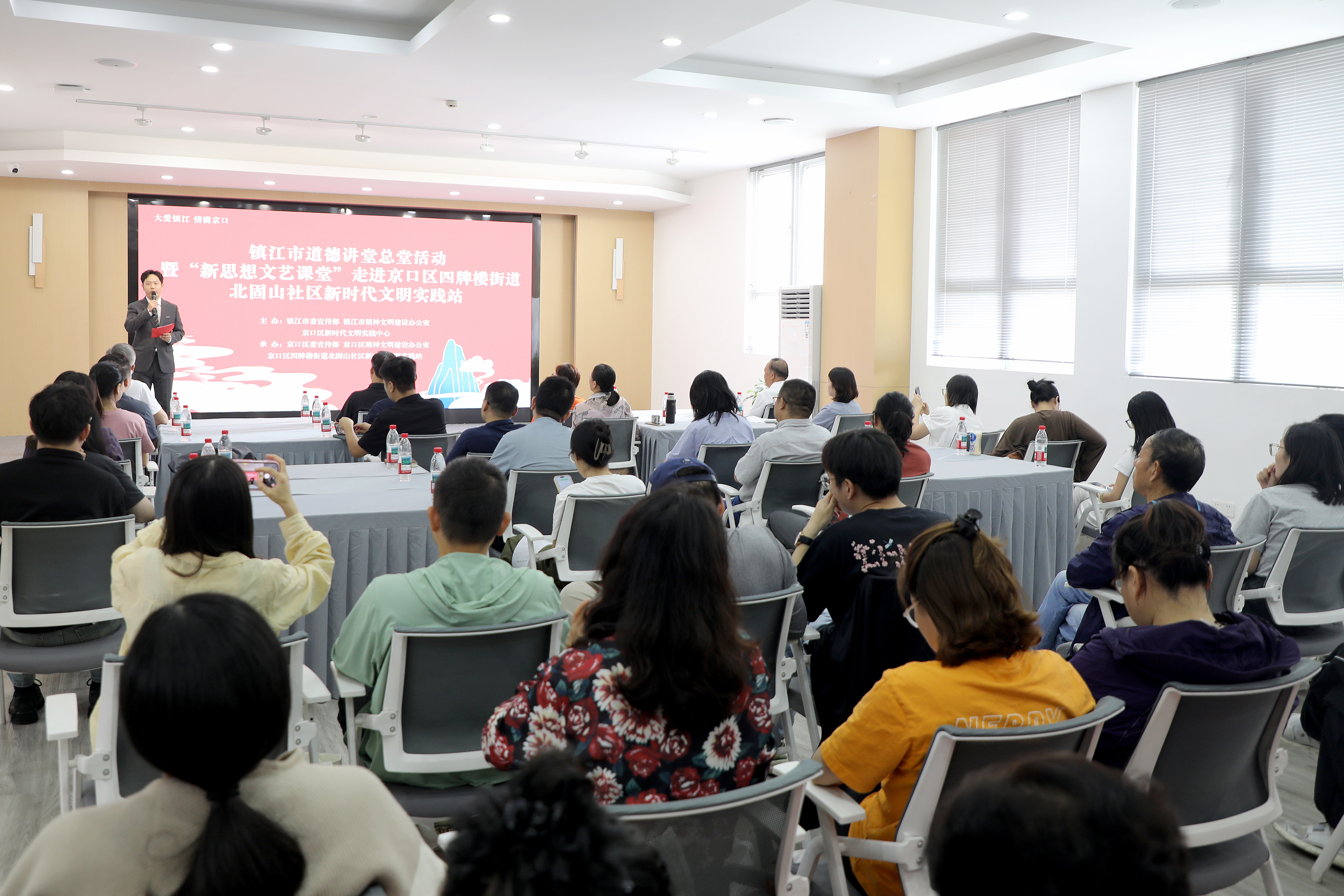 9月28日,镇江市道德讲堂总堂活动暨“新思想文艺课堂”走进京口区四牌楼街道北固山社区新时代文明实践站。本场活动由镇江市委宣传部、镇江市精神文明建设办公室、京口区新时代文明实践中心主办,京口区委宣传部、京口区精神文明建设办公室、四牌楼街道北固山社区新时代文明实践站承办。