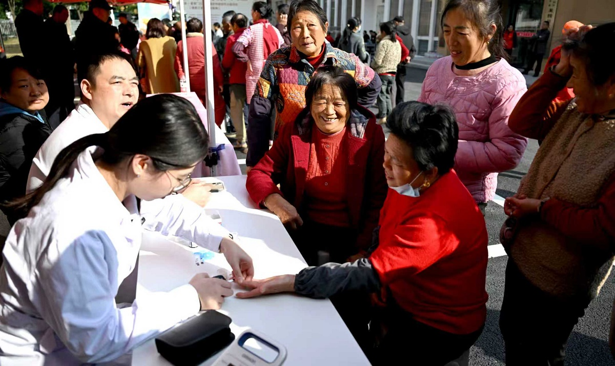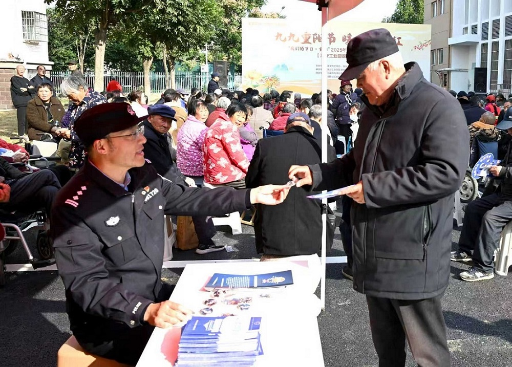 台上好戏连台,台下温情涌动。广场另一侧的志愿服务市集前,早已排起了长队。健康义诊区,医生们俯身细致为老人量血压、听心肺,针对高血压、关节炎等老年常见病耐心叮嘱用药禁忌,还特意把注意事项写在纸条上塞给老人;爱心义剪区,理发师轻手轻脚为老人梳理头发,剪完后仔细拂去衣领上的碎发;法律咨询、反诈宣传摊位前,志愿者拿着图文并茂的手册,用“拉家常”的方式讲解养老诈骗防范、老年人权益保障等知识,遇到听力不好的老人,便凑到耳边逐字逐句说清楚……据了解,今年以来,园区已多次举办这样的“赶集式”服务,让老人们在“家门口”就能享便利、得实惠。