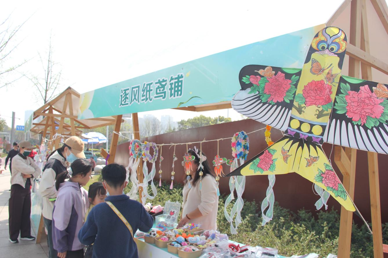 舞台外的活动现场同样春意盎然:12个春日风物市集摊位一字排开,青团、柳叶烧饼、手工艾草香囊等传统美食与手作琳琅满目,手绘纸鸢、植物拓印等体验项目吸引了不少小朋友驻足。原创设计的“风起清明”主题美陈打卡点前,不少市民拍照留念,将清明的节日记忆定格在镜头里。本次活动特意将民俗体验与文明倡导结合,营造出可逛、可品、可感的沉浸式氛围,让市民在游园间感受节气之美、传递追思之暖,共赴一场诗意清明的春日之约。