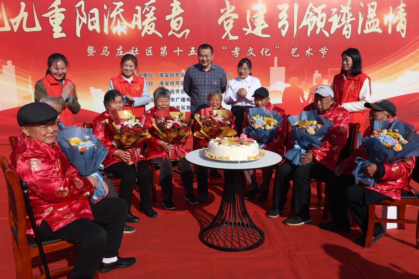 岁岁重阳念亲恩,文明实践谱新篇。10月27日上午9时,淮安经开区钵池街道马庄社区党群服务中心广场暖意涌动,社区第十五届孝文化艺术节暨新时代文明实践活动在此举行。活动由钵池街道指导、马庄社区新时代文明实践站承办,汇聚党员志愿者、群众志愿者与8位80岁高龄老人,传递孝亲温情,践行文明实践精神。