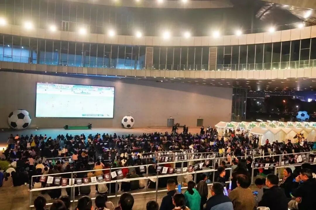 长江文化中心新时代文明实践广场以“沉浸式、有温度、高互动”为导向,打造文明观赛新场景,让足球热情与文明风尚双向奔赴。现场,24家美食市集提供暖心餐食,近100套桌椅有序摆放,志愿者引导市民按需取用、文明就餐,妥善解决“观赛+用餐”需求。同时,足球射门赢抵用券、打卡拍照、领取加油礼包等活动,让观赛更具参与感。市民们自觉遵守秩序,带着孩子参与游戏,在签名墙写下助威语,主动按下打call按键,用文明方式为球队喝彩。终场哨响泰州队夺冠之际,长江文化中心精心准备的“烟花彩蛋”如期绽放,草坪上空的绚丽烟花,不仅是对冠军的致敬,更是对市民的文明观赛热情的回馈,烟花与市民的欢呼声交织在一起,将现场狂欢推向顶峰。