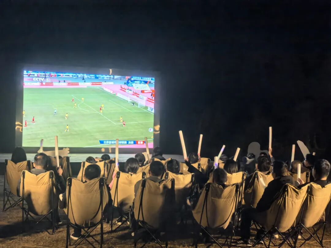 11月1日傍晚,“岳战越勇‘缘’来岳庙”主题苏超决赛观赛活动在生祠镇岳庙·刘国钧故居新时代文明实践基地火热开启,活动现场设置了LED观赛大屏,分设“战鼓催征”声援区、“宋风雅集”文化体验区、“壮志有餐”美食打卡区等功能区块,全场景布置有加油道旗、互动标语、祈愿签名墙,将岳飞“尽忠报国”与“黑马”泰州队“奋勇拼搏”相融合,营造了浓厚的观赛氛围,吸引百余名球迷携家带口来到“第二现场”见证这场泰州队与南通队的巅峰对决。泰州队延续了“黑马”一“黑”到底的隐忍坚韧,以过硬的技术和心理素质乘“凤”破“狼”,战胜了此前全无败绩的南通队,全场欢呼沸腾,大家以真诚的守候见证了泰州队夺得苏超冠军的历史荣耀,也在这一路的观赛体验中倍感城市荣誉,收获了泰州队顽强拼搏带来的精神力量。