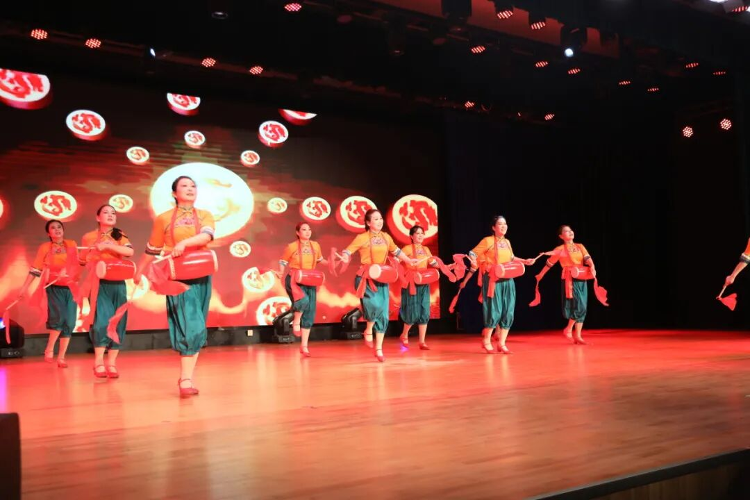 随着一阵急促而有力的鼓声响起,石头寨村的腰鼓队踩着鲜明的节奏跃入舞台中央,红绸飞扬,步点铿锵。鼓声时而密集如雨,时而疏朗如风,演员们的神情专注而欢腾,每一个转身、每一次击打都洋溢着土地般的生命力。台下不少年长的观众跟着节奏轻轻点头,仿佛这鼓点敲响的是他们熟悉的岁月回音。