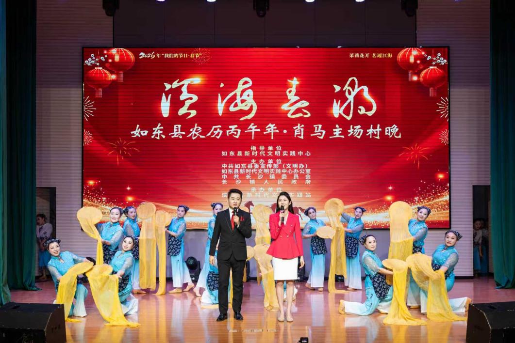 2月9日,全国文明村——南通如东长沙镇滨海村文化大礼堂内灯火通明、座无虚席。2026年“我们的节日·春节”如东县农历丙午年·肖马“滨海春潮”主场村晚活动如约上演。在这里,海洋文化与春节民俗激情碰撞,为当地群众奉上了一场接地气、冒热气、聚人气的文化盛宴。