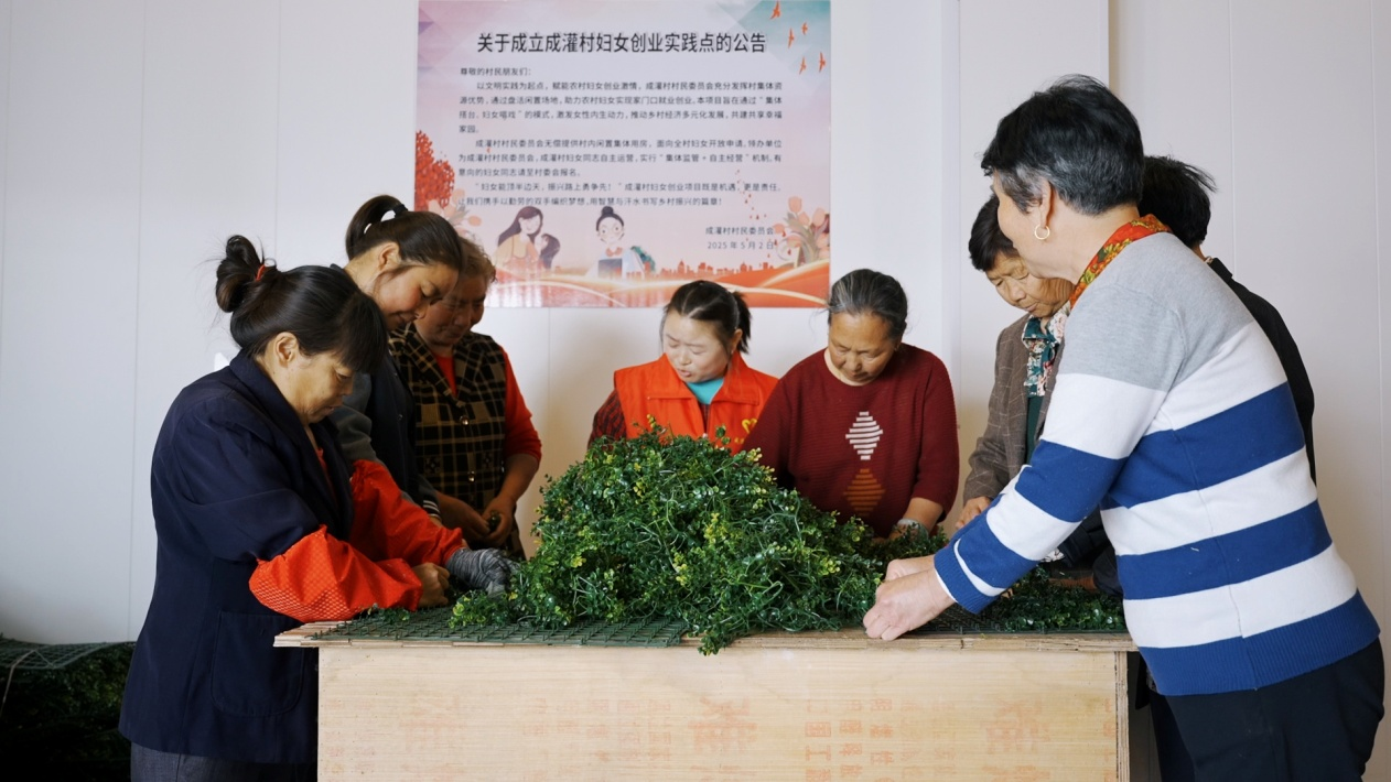 清晨,成灌村“爱心助餐点”里飘出阵阵香气,老人们围坐一桌,享用着热乎可口的早餐。在不远处的“爱心手工坊”,妇女和老人们正专注地忙碌,指尖翻飞间,一件件草皮制品逐渐成型,既丰富了闲暇生活,也为村庄增添了活力。