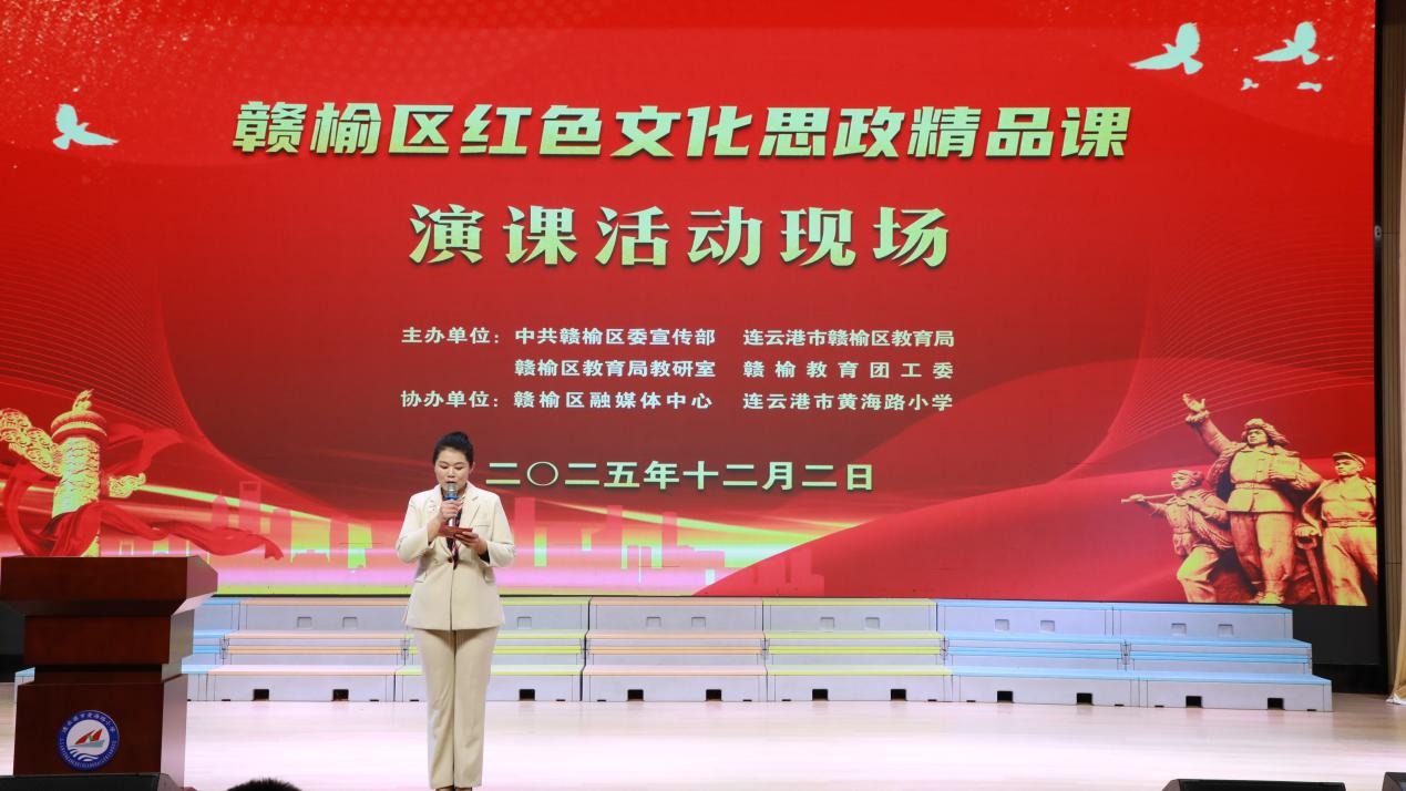“当运用AI技术复原的符竹庭将军出现在大屏幕上,将军仿佛穿越烽火与我们重逢……”12月2日上午,黄海路小学海城路校区的报告厅内掌声雷动,由连云港市赣榆区委宣传部、区教育局主办,区融媒体中心、连云港市黄海路小学协办的全区红色文化思政精品课决赛现场观摩活动正在这里火热举行。20支教师团队轮番登台,用一堂堂有温度、有深度、有新意的思政课,让赣榆本土红色基因在课堂上得以鲜活传承。