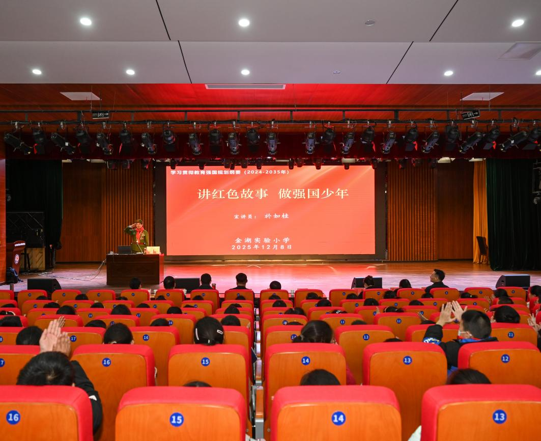 “全国诚信之星”“全国模范退役军人”於如桂满怀热情地讲述红色故事,既生动再现革命先辈的初心与足迹,也分享了自己退役后诚信立身、踏实做事的人生信条,更传递了坚持锻炼、热心服务他人的生活态度。他以自身经历为镜,让爱国种子在同学们心中扎根,让红色精神深深浸润心灵,更教会孩子们如何以实际行动践行初心,成长为对社会有用的新时代好少年。