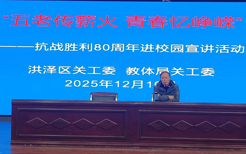 为纪念中国人民抗日战争胜利80周年,缅怀先烈、传承红色基因,12月10日,淮安市洪泽区举办“五老传薪火,青春忆峥嵘”主题宣讲活动。活动邀请“五老”(老干部、老战士、老专家、老教师、老模范)代表走进校园,与青年学子展开跨越时空的对话,重温烽火岁月,汲取精神力量。