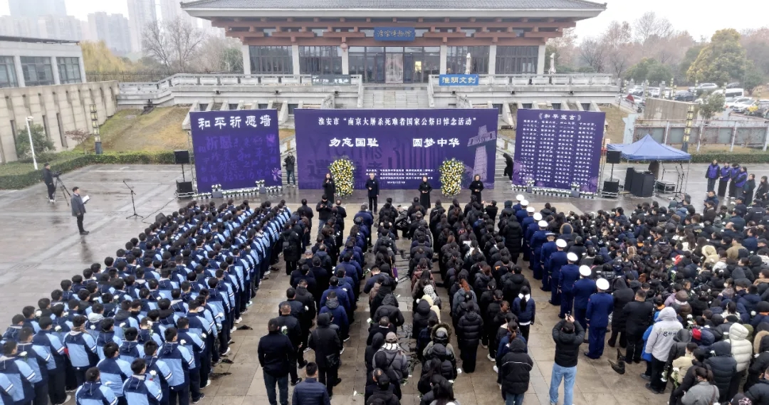 12月13日是第12个南京大屠杀死难者国家公祭日。当天上午十时,寒雨夹雪,警钟长鸣,淮安市“南京大屠杀死难者国家公祭日悼念活动”在张纯如纪念馆广场举行。社会各界群众齐聚于此,参加“勿忘国耻 圆梦中华”主题纪念活动,沉痛悼念遇难同胞,铭记历史,祈愿和平。