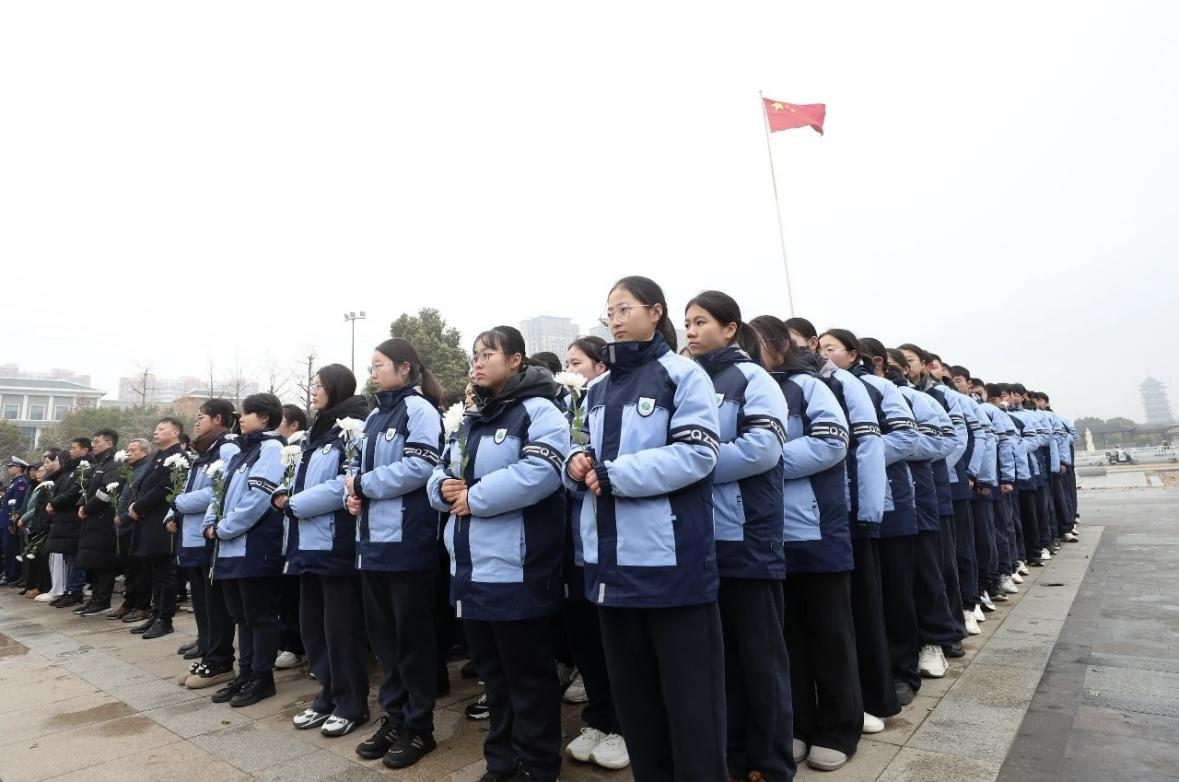 公祭仪式在肃穆的氛围中开始,防空警报声响彻广场,全体人员肃立默哀一分钟。默哀完毕,礼兵迈着庄重的步伐敬献花篮,朵朵白菊象征对历史的敬畏与对和平的珍视。