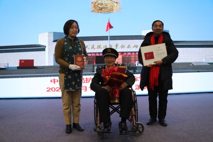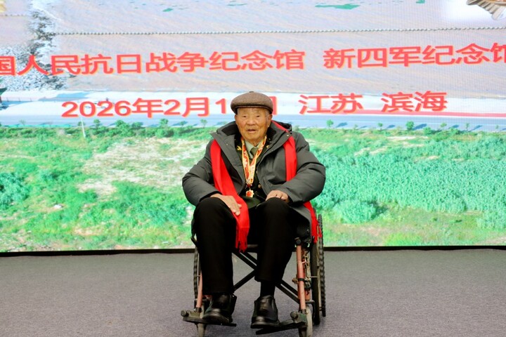 铭记峥嵘岁月,共贺期颐华章。2月19日,农历正月初三。盐城市滨海县,抗战老兵王玉恩举办百岁寿诞,同时举行王玉恩抗战胜利80周年、70周年纪念章捐赠仪式。中国人民抗日战争纪念馆革命文物部主任赵迪立,新四军纪念馆副馆长朱卓,分别接受捐赠,并向王玉恩颁发收藏证书,回赠抗战文创礼品。中共滨海县委宣传部常务副部长王永强、滨海县退役军人事务局、滨海县民政局、滨海县新四军研究会代表、百岁烈属陈士英和亲属代表、王玉恩亲友等200多人,共同见证这份光荣与喜悦!
