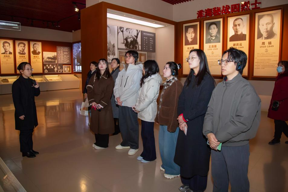 研学团首站扎根周恩来家乡淮安。在周恩来纪念馆,周恩来纪念地管理局党委书记、局长、周恩来纪念馆馆长祁素娟讲授《从西安事变看周恩来的抗战精神:忠诚、智慧与担当》思政课,让青年学子们深刻领略周恩来在抗战关键节点的忠诚担当与战略智慧;青年学子们在讲解员的引导下参观《人民总理周恩来》基本陈列展,从“为中华之崛起而读书”的少年壮志,到“我认的主义一定是不变了”的信仰誓言,再到毕生践行“愿相会于中华腾飞世界时”的赤诚信念,沉浸式感悟周恩来“为主义坚守、为人民奋斗”的伟大一生。