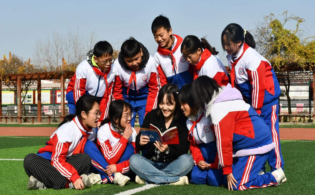 宣誓环节结束后,活动进入轻松活泼的互动环节。伴着轻快的旋律,同学们身着整齐校服,摆出连贯划一的手势动作——时而双手比心致敬祖国,时而握拳聚力象征守护宪法,每一个眼神都饱含热忱,每一个动作都传递信仰,用青春姿态将对祖国的热爱与对宪法的尊崇具象化呈现。