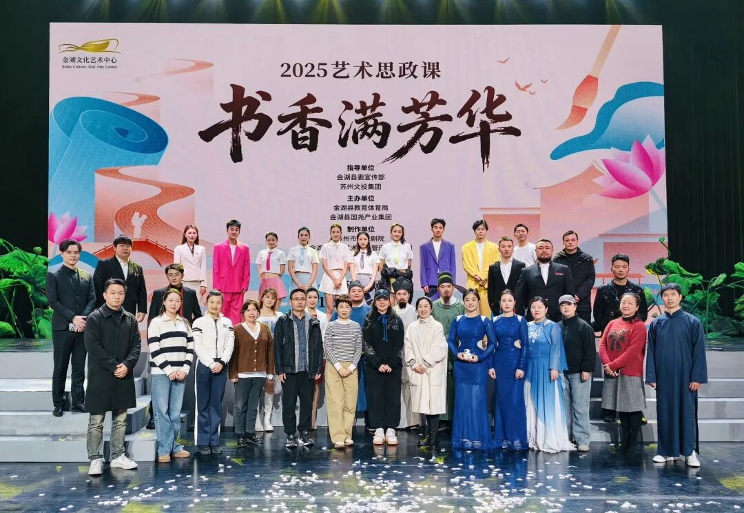 这堂特殊的艺术思政课,由金湖县委宣传部指导,金湖县教体局和金文中心共同策划,苏州文投集团旗下苏州歌舞剧院制作。它全然不同于传统的课堂讲述,以大舞台为讲堂,以艺术为语言,将厚重的思政内涵化为可感可知、生动鲜活的情景体验。