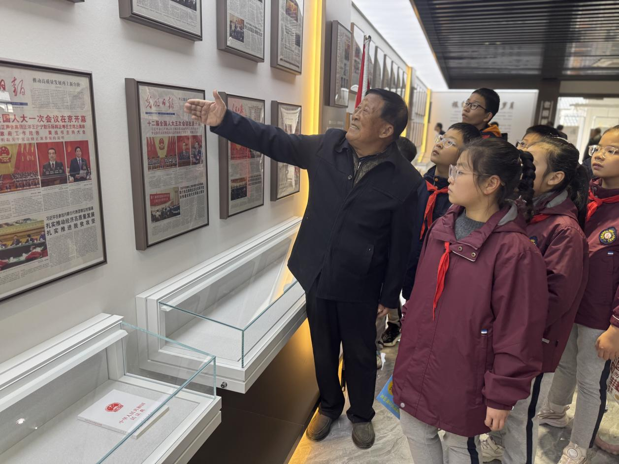 在刘河村“老报新声”宣教阁,刘大亮以历史脉络为轴向孩子们介绍了我国民主发展历程,泛黄的史料在他生动的讲解中化作鲜活的教材。之后在刘校长家中,他如数家珍,将多年奔波全国各地、收藏二十余万份报刊的“集报育人”初心娓娓道来,孩子们也被书架上整齐堆叠、分类存放的海量报刊所震撼。这位退休的教育工作者深情勉励孩子们:“知识改变命运,希望你们都能爱上阅读,用书籍铺就成才之路。”
