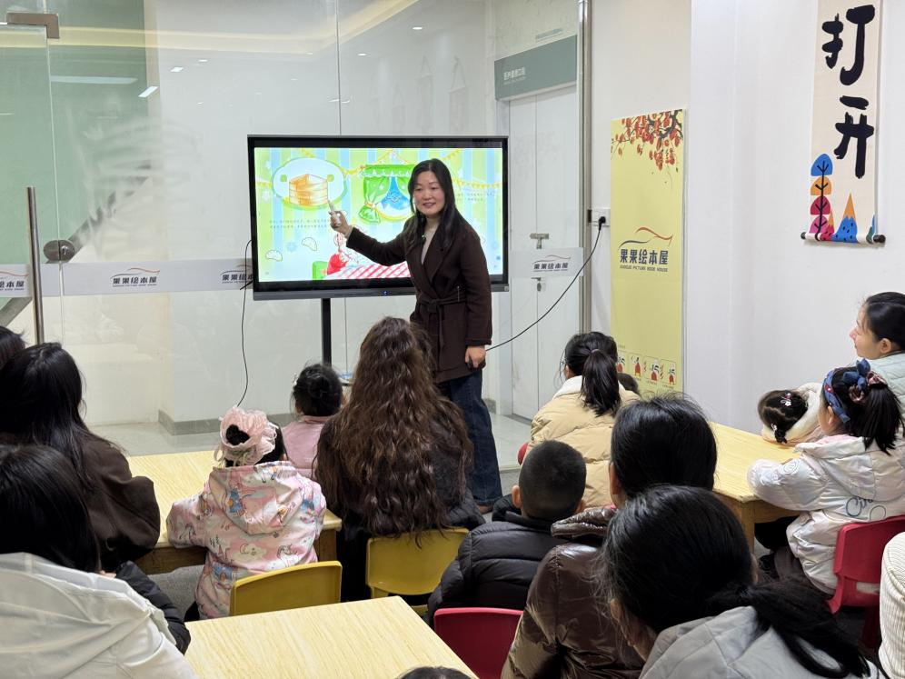 活动伊始,在弥漫着淡淡书香的绘本屋内,全民阅读推广人季红霞以绘本《奇奇的冬至出行》为引,通过生动的图画和细腻的讲述,孩子们跟随主人公奇奇的脚步,走进了冬至的世界。故事中“奇奇”的见闻,瞬间点燃了孩子们对传统节气的好奇与想象,为接下来的亲身体验做好了温暖铺垫。
