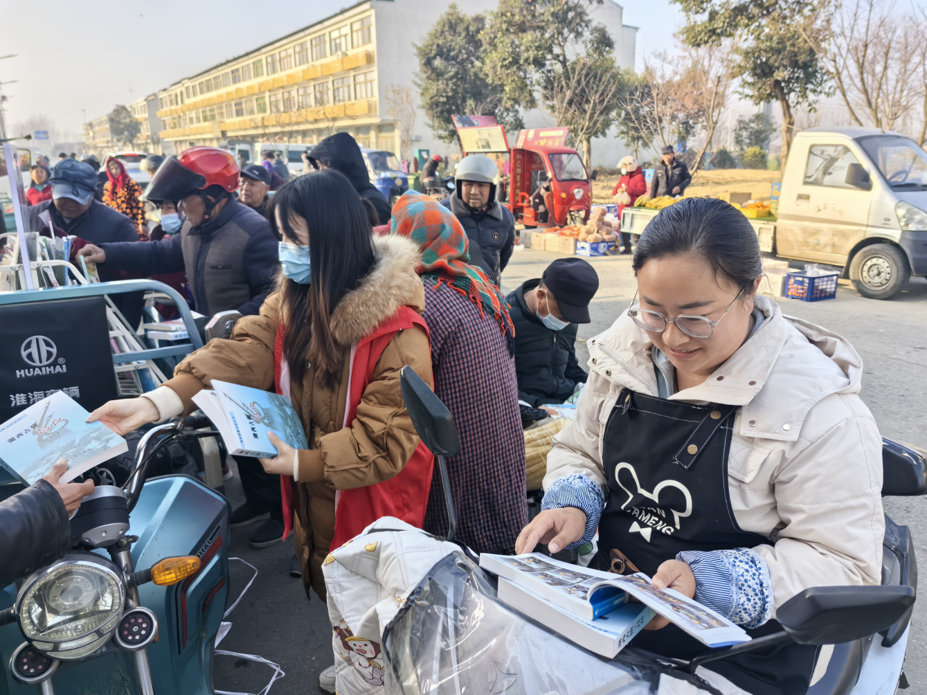 活动现场准备了大量优质书籍开展送书活动,引得不少赶集群众驻足。书籍种类丰富多元、实用性极强,涵盖生活百科、农技指导、儿童读物等多个领域,为赶大集的群众送上一份特殊的“文化厚礼”。工作人员在现场耐心为群众讲解书籍内容、协助挑选适配读物,这份浸润心灵、助力发展的“文化厚礼”,让群众在赶大集的热闹氛围中既能选购生活用品,又能收获知识养分,真正实现“赶集淘货”与“书香充电”两不误。