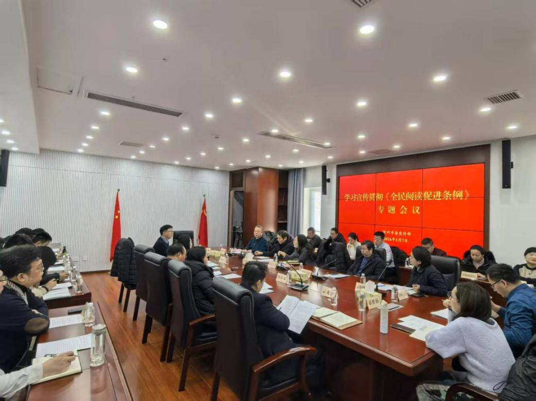 1月7日,徐州市委宣传部组织召开学习宣传贯彻《全民阅读促进条例》专题会议。市委宣传部、市文广旅局等单位分管负责人,部分县(市、区)宣传部负责人,市全民阅读促进会、云龙书院等社会组织负责人等参加会议。