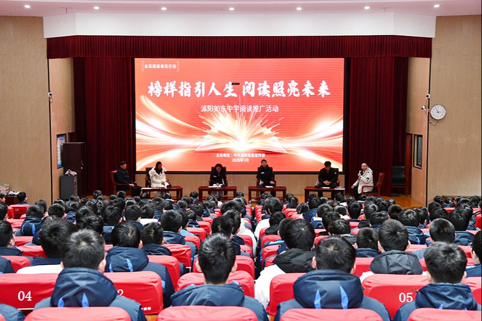 为深入推进全民阅读工作走深走实,充分发挥大学生榜样的示范引领作用,点燃青少年阅读热情、涵养阅读习惯、提升阅读素养,1月26日,2026年沭阳县 “全民阅读春风行动” 暨第五季 “榜样指引人生 阅读照亮未来” 大学生寒假阅读活动在沭阳如东中学报告厅温情启幕。活动特邀江苏省特级教师、正高级教师许大成坐镇点评,以专业视角为这场青春阅读盛宴赋能添彩。