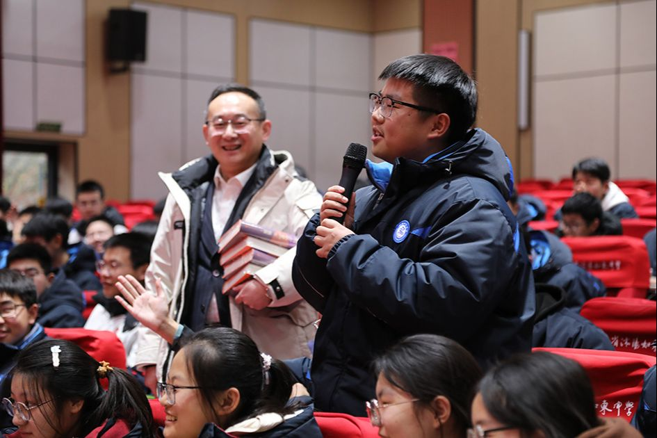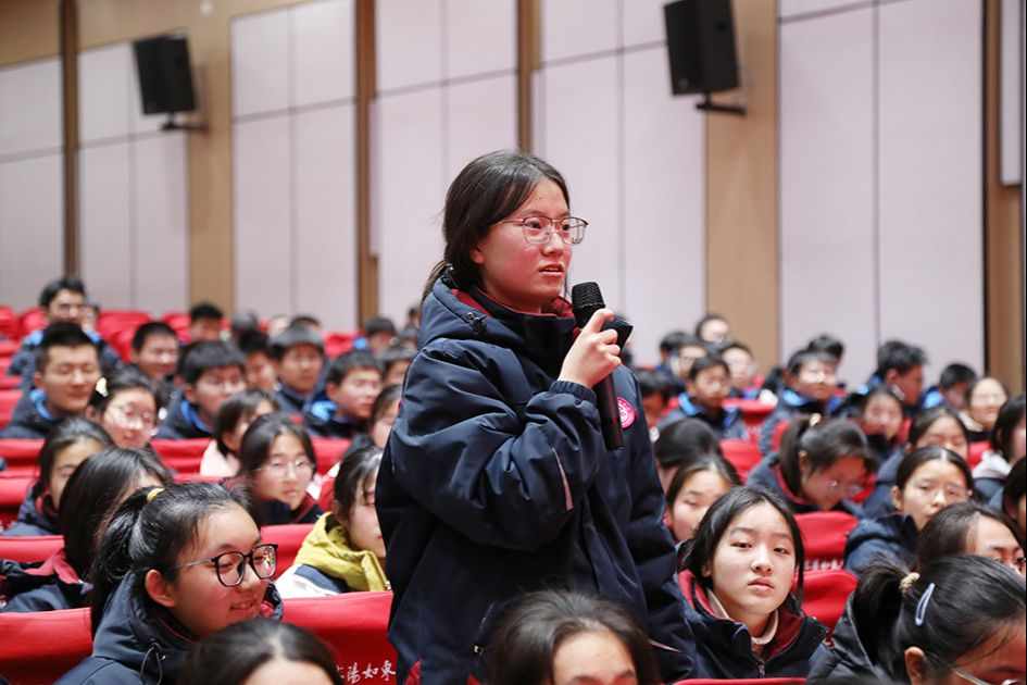 互动交流环节气氛热烈,同学们踊跃举手、积极提问,围绕 “如何平衡学业压力与深度阅读”“经典作品的现实指导意义”“高中高效阅读方法” 等热点话题与大学生们深入探讨。四位学子结合自身求学经历,耐心细致地答疑解惑,分享实用的阅读技巧与学习经验。“学长学姐的解读让经典变得更易懂、更有温度,也让我明白阅读不是负担而是享受。” 沭阳如东中学高一年级学生胡畅满脸收获地说,“今后我会挤时间多读书、读好书,让阅读成为滋养心灵的精神食粮,既提升写作能力,更筑牢精神支柱。”